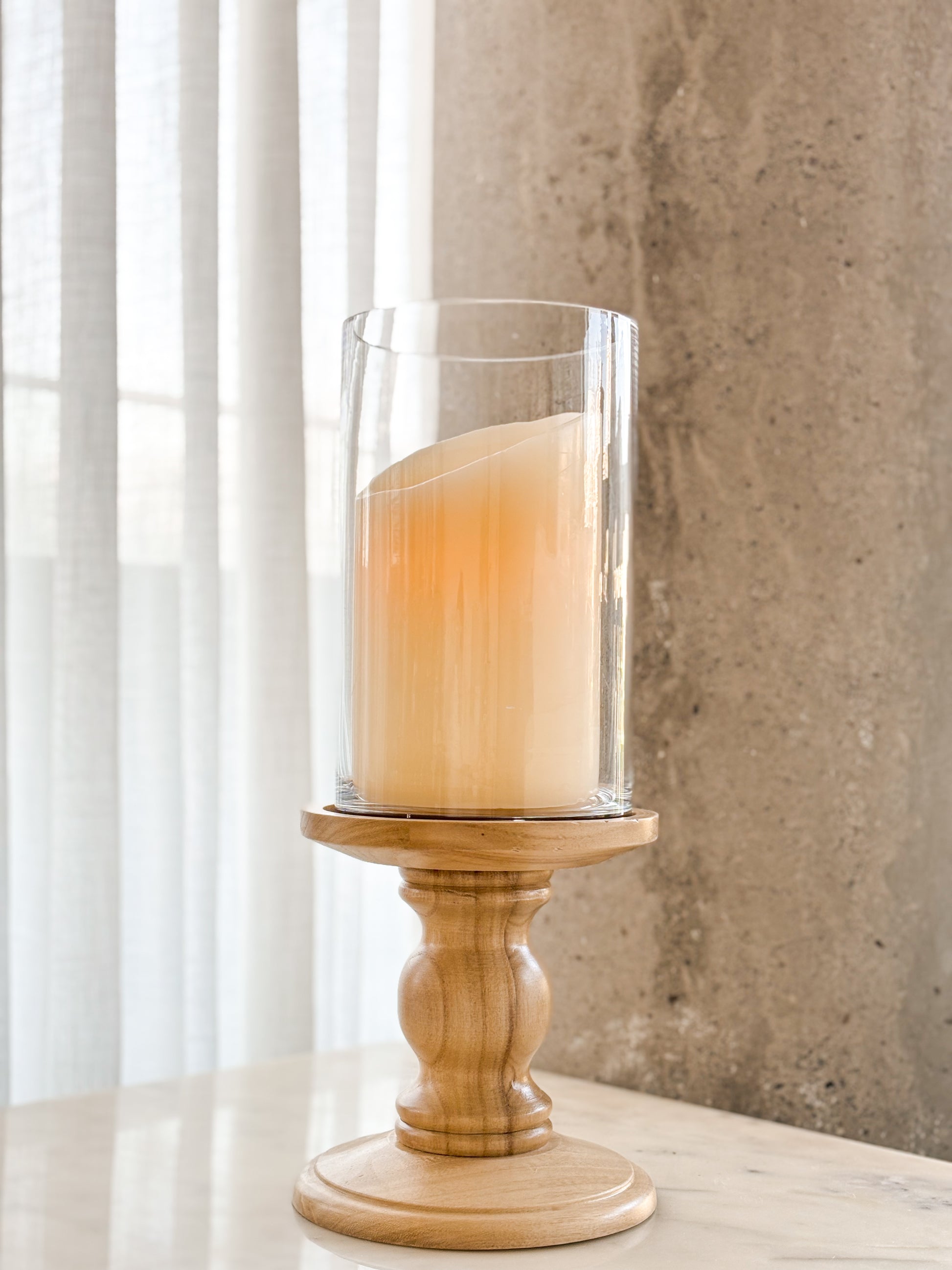 Aporta calidez y estilo con este candelabro de madera, ideal para velones. Su diseño simple y elegante realza cualquier espacio, creando una atmósfera acogedora y sofisticada. ¡Perfecto para decorar tu hogar!